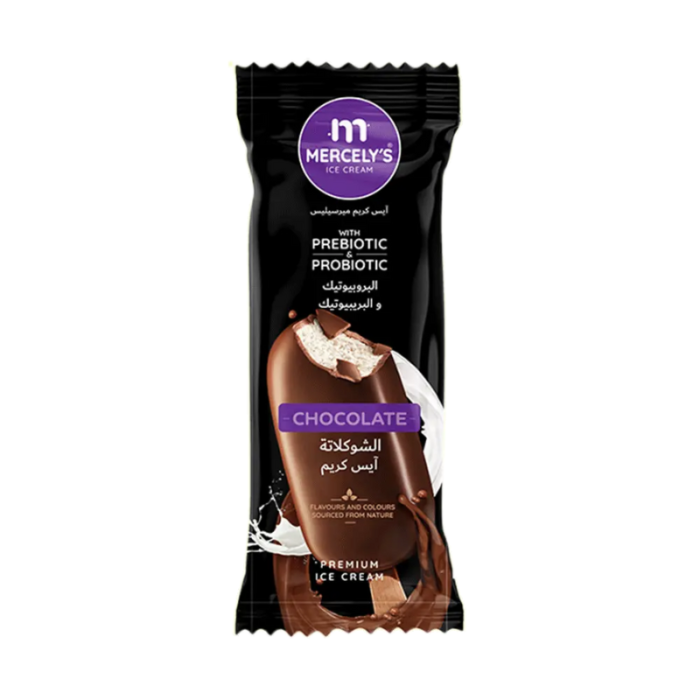 Looking for the best chocolate ice cream bar in Qatar? Mercelys Choco Bar features rich chocolate ice cream covered in a thick, velvety chocolate shell. Each bite delivers a double dose of chocolatey goodness with a creamy interior and crunchy exterior. Perfect for chocoholics and dessert lovers alike. A true indulgence that melts hearts with every bite.
