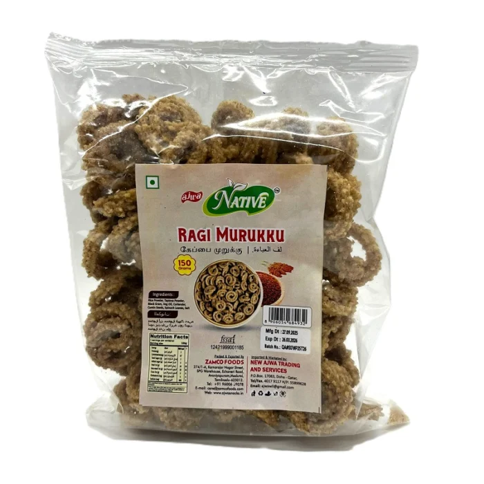 Looking for the best ragi murukku in Qatar? Native Ragi Murukku is a traditional South Indian snack made with nutritious ragi flour, giving a wholesome twist to your crunchy cravings. Perfectly spiced and deep-fried for crispiness, itโs rich in calcium and fiber. Enjoy it with tea or as a healthy evening bite with authentic homemade taste. A crunchy and nutritious delight in every bite!